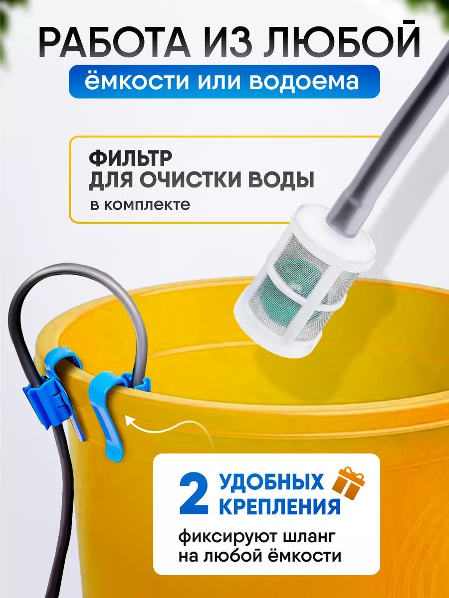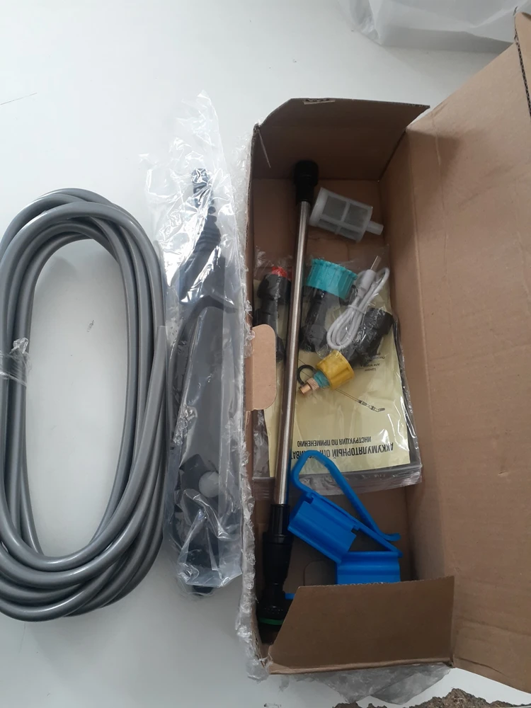 Распылитель садовый, за счет работы от аккумулятора, компактного размера, эргономичной ручки и длинного шланга - можно взять с собой на дачу или на природу для мойки автомобиля.